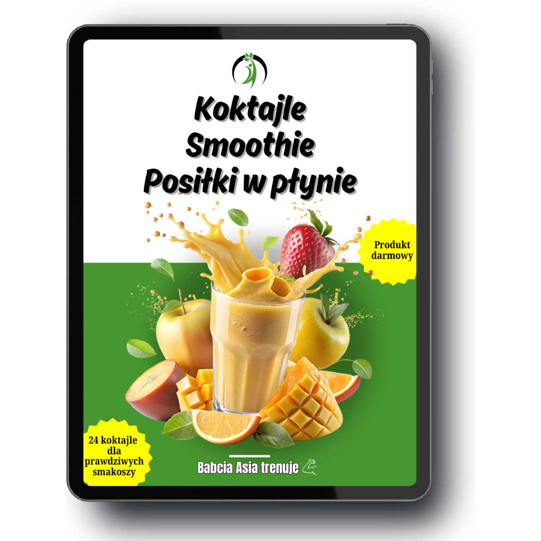 4. Koktajle, smoothie i posiłki w płynie (PDF). Dodatkowy ebook przydatny w praktyce – 24 przepisy ze zdjęciami + obliczone kalorie i makroskładniki. Idealne, gdy chcesz zjeść coś lekkiego, ale nie masz czasu gotować — na szybkie śniadanie, przekąskę lub posiłek „w biegu”. Pyszne, zdrowe, błyskawiczne.